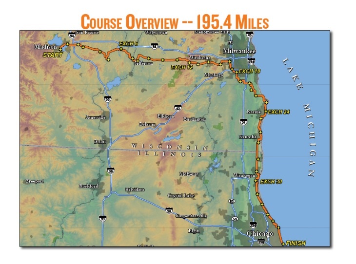 This was my second Ragnar and this time I ran with lots of people I knew, Liz put our team together, her and I had met at Ragnar in 2012 and we are both part of the Kenosha Running Club. I recruited a few of my chi town friends to join the team, I have to say van 1 had a lot of fun. Some of us met at my house the night before to get set for the next day. I live around the halfway point, between the start and finish. I actually live right near the major exchange 24, so my van was able to stop at my house during the race to catch a couple hours of sleep and a shower before doing our third leg of the race.