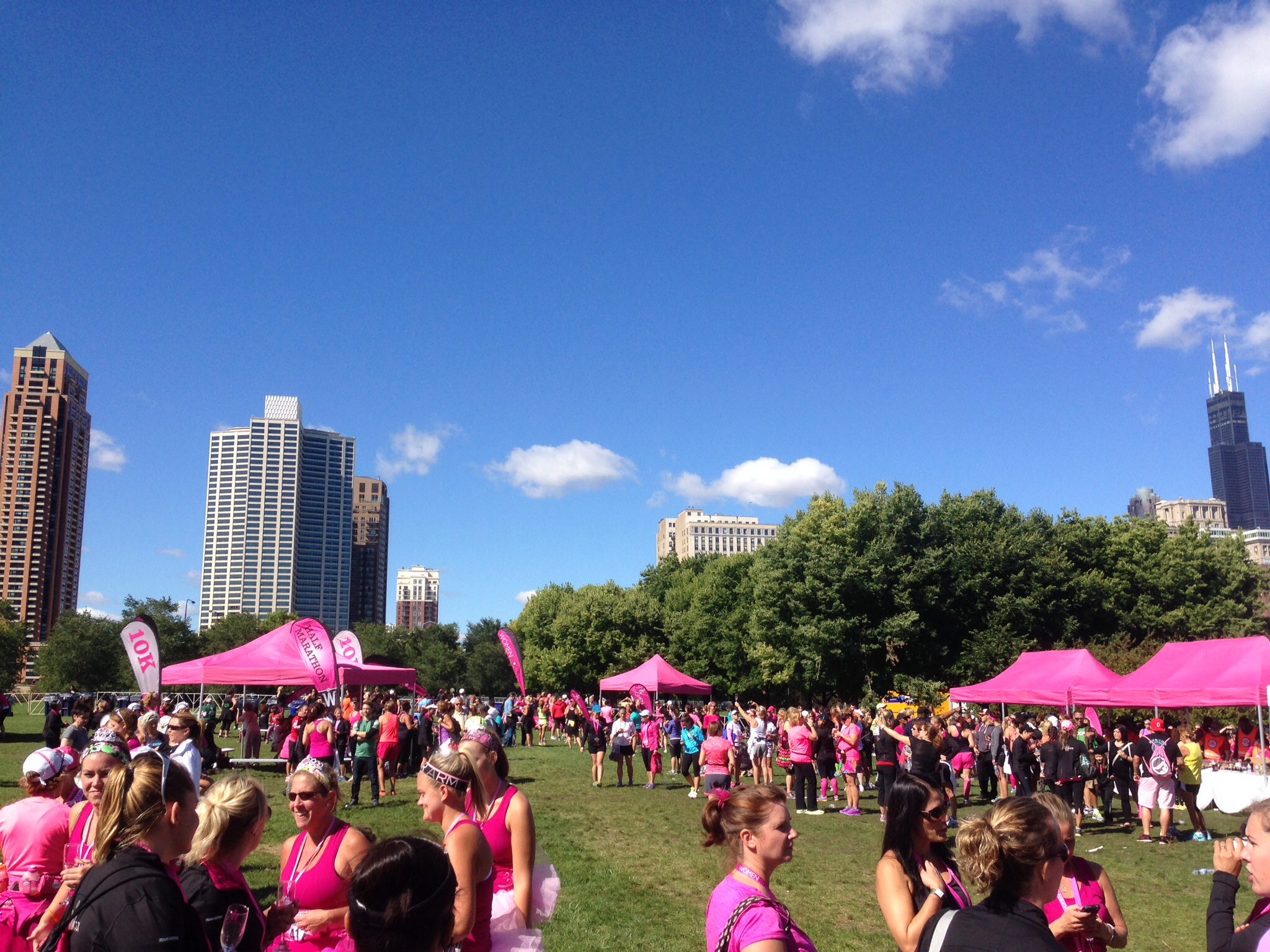 This was a race that I was really looking forward to, it was an all women’s half, 10k and 5k. I also got free entry into the race due to all the volunteer hours I had done with Team Ortho, they have a program where you earn bones to go towards gear or race entries, so I had to do the race since I got free entry! Only problem was I had already signed up for a race on Sunday, the Biggest Loser Half. So I decided to give it a go and do 2 halves in one weekend. My goal was to take Women Rock slow and tried not to overdue it so I still had something left in the tank for Sunday. Jenna and I headed down nice and early, the weather was perfect for a half marathon. The course started out like most of the Team Ortho races, it’s on the Chicago lakefront trails which is nice but also a bit congested. Turns out there was another race group out there at the same time, but we made due. Just before mile 4 the 10k came into our route and it was super congested and sucked as we tried to run around the Shedd Aquarium, the path was not very wide and the walkers had no race etiquette at all, so hard to keep moving and get around them. This happened 2 more times, there also were not enough water stops on the course. I did get to talk to Zach the race director after and told him my observations. Post race I also ran into Debbie who I had met at the Chicago Women’s half, so fun to see people you know at races. We headed off to the after party for champagne and hot men!